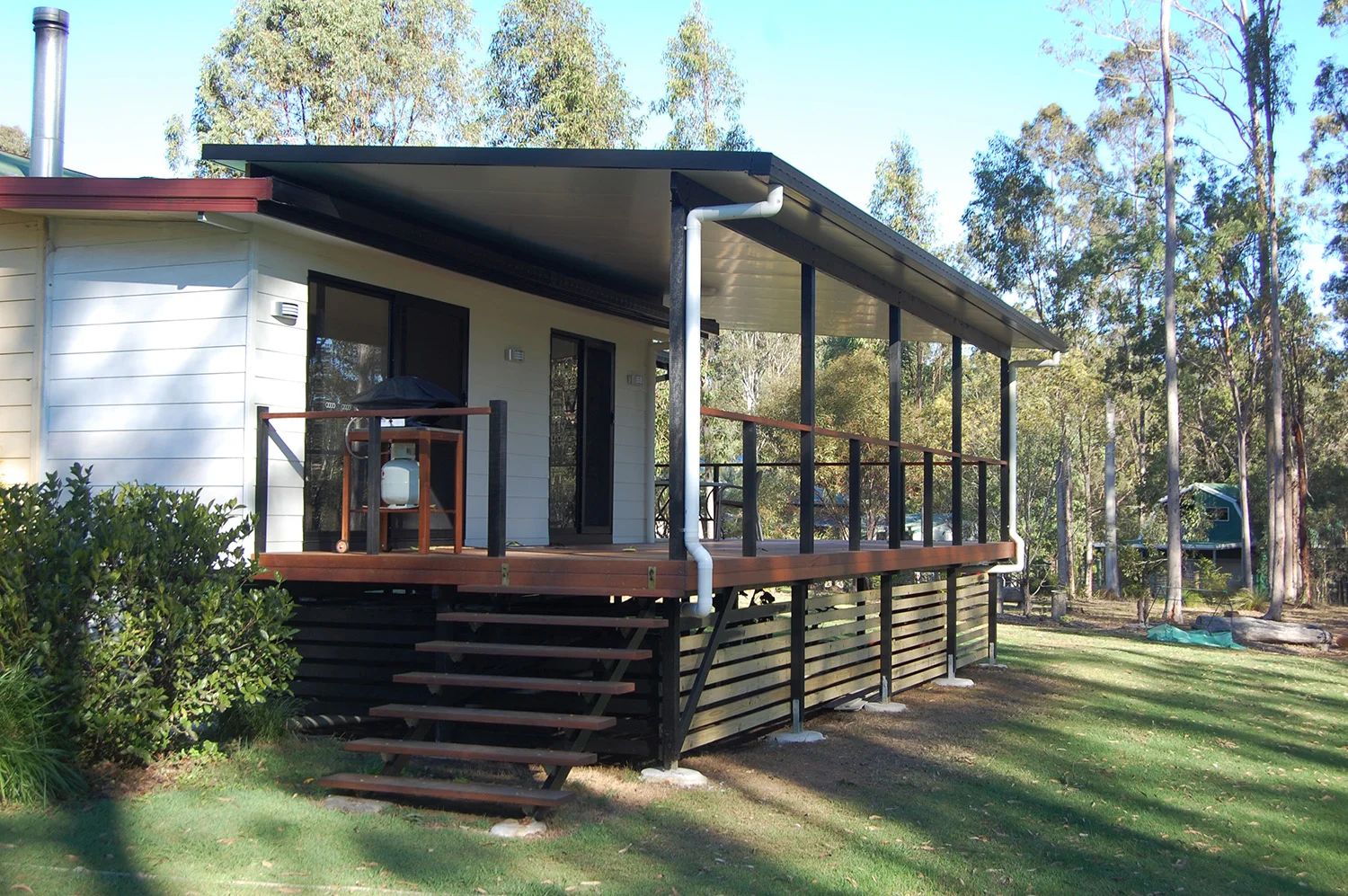 Entertainer’s delight! Merbau deck with insulated panel patio, finished with black metal ballustrading and merbau handrail.